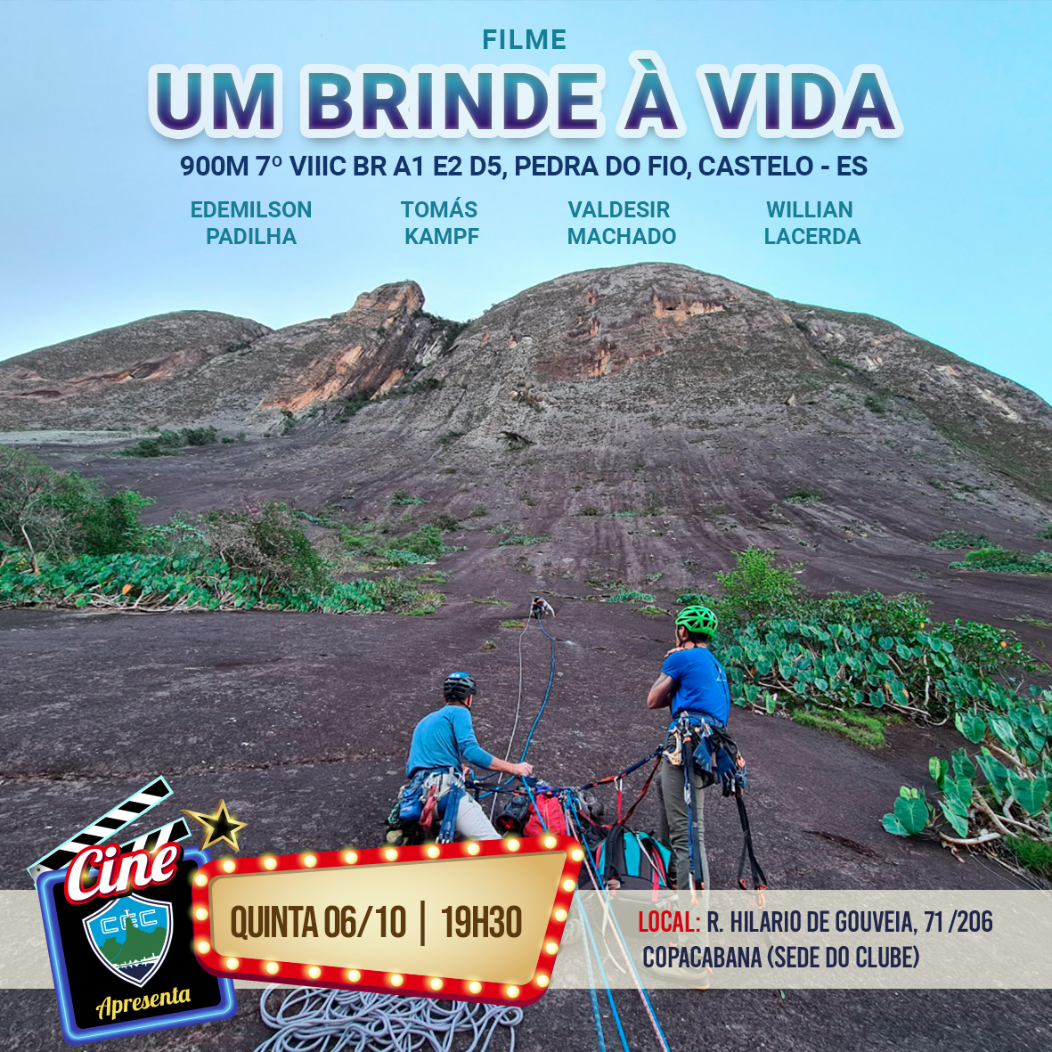 Vamos fazer a exibição inédita do filme, Filme “Um brinde à vida – 900m 7º VVVIC BR A1 E2 D5, Pedra do Fio, Castelo – ES”