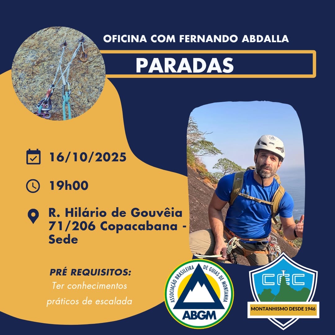 A oficina de Paradas vai abordar e discutir aspectos técnicos sobre os diversos tipos de paradas utilizados na escalada esportiva e tradicional.