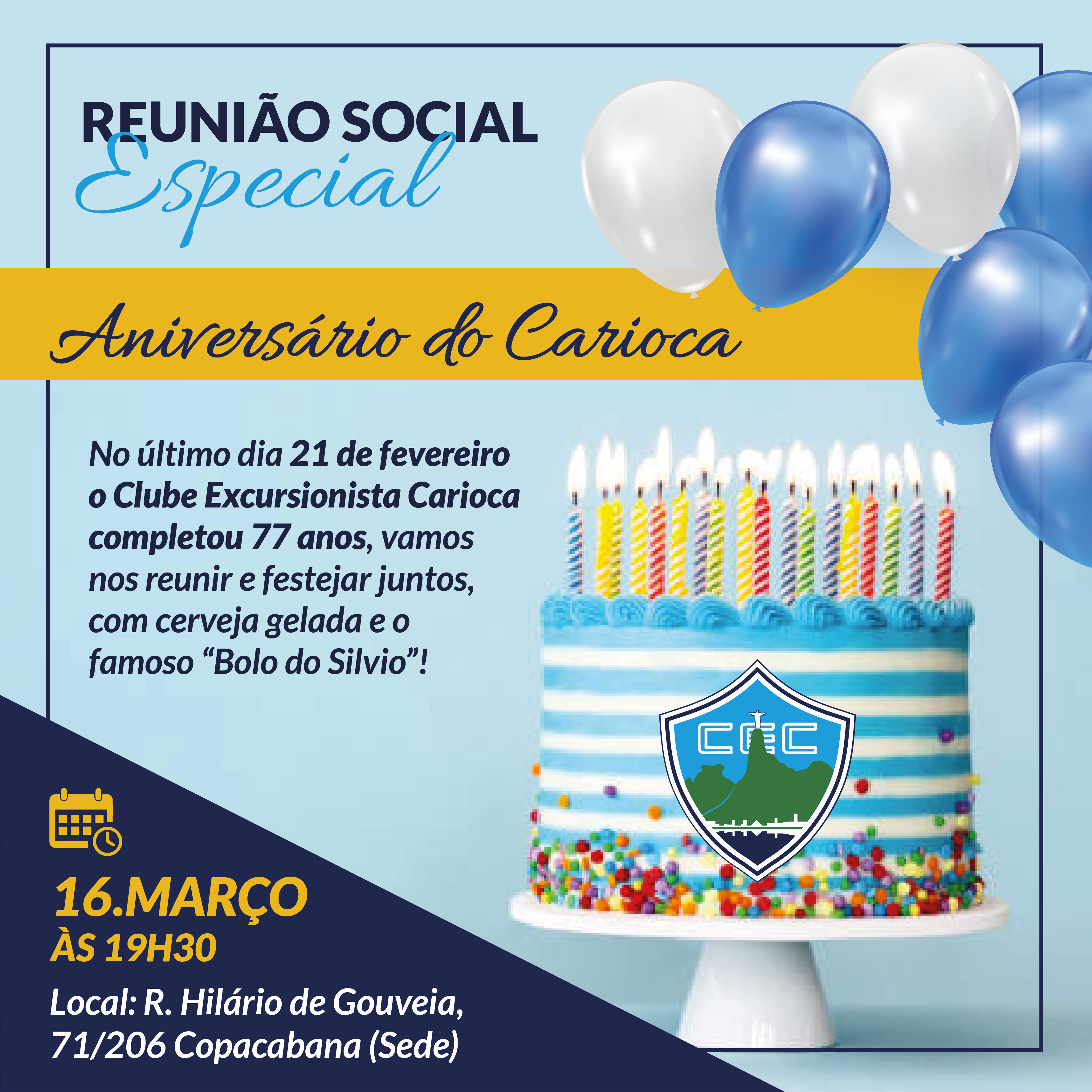 Atenção pessoal, vamos na proxima quinta nos reunir para comemoarar mais um ano de vida do nosso clube do coração! Vai ter cerveja gelada, quitutes e o principal, o famso bolo do Silvio!