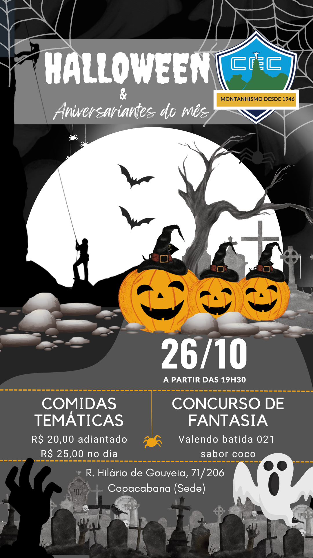 Venha vestido com a sua fantasia mais assustadora e prepare-se para competir no nosso concurso de fantasias valendo uma batida 021!