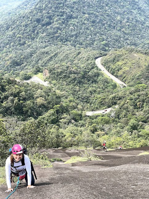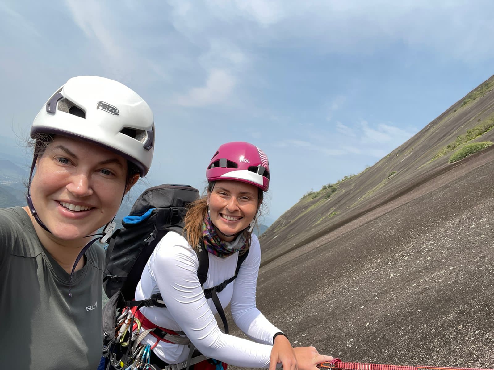 Seguimos escalando bastante juntas ao longo de 2021, guiamos/revezamos vias que eu nem pensava em guiar um dia, como “As de espadas”, “Alfredão”, “Urbanoide” (essa ainda estou devendo alguns trechos hahahaha), dentre muitas outras aventuras na serra – a vista, enfim, um repertório que foi crucial para nossa “empreitada” na Aperitivo.