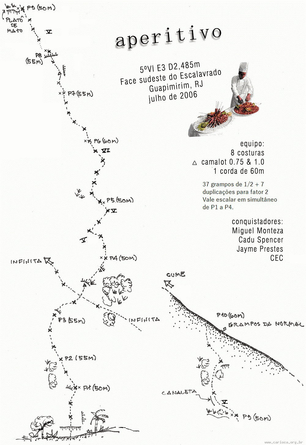 Mas voltando à Aperitivo, não lembro bem porque (chuva ou agenda), na verdade acho que foi medo mesmo rs, não rolou em maio, mas sempre ficava no nosso “radar”.  Perguntamos ao amigo Leo Waisman, que já tinha guiado a via duas ou três vezes antes, qual o melhor preparo para a Aperitivo, e ele, simplesmente respondeu – escalar na serra. Fizemos então diversos bate-voltas na serra, mas sempre adiávamos esse objetivo, afinal, precisávamos treinar aderência, ganhar conforto em vias de maior exposição – nossa meta era um intensivão no contraforte do Corcovado (que nunca rolou – por questões de agenda, para variar). Em algum momento decidimos que tínhamos que fazer, e chamamos o Leleo para uma segunda acordada, foi quando fechamos a data: 25 de setembro (após a segunda dose da vacina contra covid). Ah, esqueci de mencionar, tanto eu quanto a Kyra já havíamos escalado os 500m da via participando com certo conforto, ela em 2017 com Leo e eu em 2018 com o Leandro Collares, mas era uma via E3, com lances loooongos e isso era o que mais preocupava.